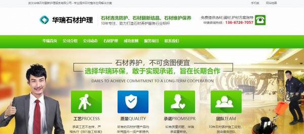 我們公司與 武漢華瑞石材護理有限公司合作中,對這個公司所經(jīng)營的石材護理這個行業(yè)的網(wǎng)站制作積累了豐富的經(jīng)驗;同時在該行業(yè)的網(wǎng)站建設(shè)等多元化的石材養(yǎng)護領(lǐng)域中也有很多的成功的案例;但愿通過我們的合作,能夠幫助到合作伙伴在同行業(yè)中遙遙領(lǐng)先。