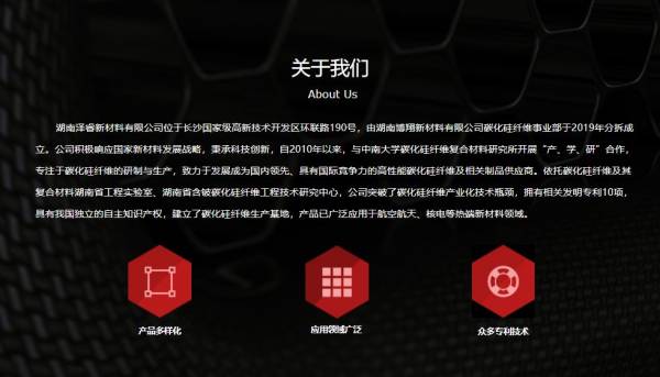 湖南澤睿新材料有限公司位于長沙國家級高新技術(shù)開發(fā)區(qū)環(huán)聯(lián)路190號,由湖南博翔新材料有限公司碳化硅纖維事業(yè)部于2019年分拆成立。公司積極響應(yīng)國家新材料發(fā)展戰(zhàn)略,秉承科技創(chuàng)新,自2010年以來,與中南大學(xué)碳化硅纖維復(fù)合材料研究所開展“產(chǎn)、學(xué)、研”合作,專注于碳化硅纖維的研制與生產(chǎn),致力于發(fā)展成為國內(nèi)領(lǐng)先、具有國際競爭力的高性能碳化硅纖維及相關(guān)制品供應(yīng)商。依托碳化硅纖維及其復(fù)合材料湖南省工程實(shí)驗(yàn)室、湖南省含鈹碳化硅纖維工程技術(shù)研究中心,公司突破了碳化硅纖維產(chǎn)業(yè)化技術(shù)瓶頸,擁有相關(guān)發(fā)明專利10項(xiàng),具有我國獨(dú)立的自主知識產(chǎn)權(quán),建立了碳化硅纖維生產(chǎn)基地,產(chǎn)品已廣泛應(yīng)用于航空航天、核電等熱端新材料領(lǐng)域。