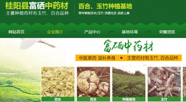 桂陽縣富硒中藥材有限公司位于歷史文化悠久、風景宜人、 氣候溫潤的湖南省桂陽縣。公司種植面積達到1000余畝,主要種植藥材有玉竹、百合品種。其中玉竹種植面積達800余畝,三年一產(chǎn)一收,計能產(chǎn)鮮貨約700萬斤,通過天然日曬干貨約有200萬斤。百合種植面積200余畝,一年一產(chǎn)一收,計約產(chǎn)鮮貨 100萬斤,通過天然日曬約為30萬斤。 2013年11月被桂陽人民政府評為桂陽縣農(nóng)業(yè)產(chǎn)業(yè)化龍頭企業(yè)。桂陽縣富硒中藥材有限公司以合作社及家庭模式共存,始終秉承“誠信,雙贏,綠色,生態(tài)”的發(fā)展理念。堅持以科 技為依托,以市場為導向,產(chǎn)學研相結合,按照生態(tài)化、資源化、無害化的原則進行生態(tài)藥材種植和林下生態(tài)養(yǎng)殖,以追求“綠色原生態(tài)”中藥材 為目標,建成綠色生態(tài)種植和休閑觀光一體,覆蓋研發(fā),種植,加工, 銷售全產(chǎn)業(yè)鏈的藥材 公司在經(jīng)營上貫徹“人本、誠信、為民”的服務宗旨,奉行“規(guī)范管理、質(zhì)量為上、信譽至上、共創(chuàng)雙贏”的企業(yè)理念。