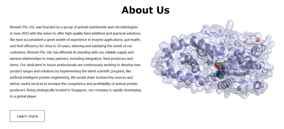 Bionutri Pte. Ltd. was founded by a group of animal nutritionists and microbiologists in June 2023 with the vision to offer high quality feed additives and practical solutions. We have accumulated a great wealth of experience in enzyme applications, gut health, and feed efficiency for close to 20 years, tailoring and satisfying the needs of our customers.